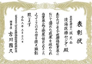 「第13回 古川医療福祉設備振興財団 顕彰表彰式及び助成金贈呈式」で、淡海医療センターが顕彰表彰を受けました。