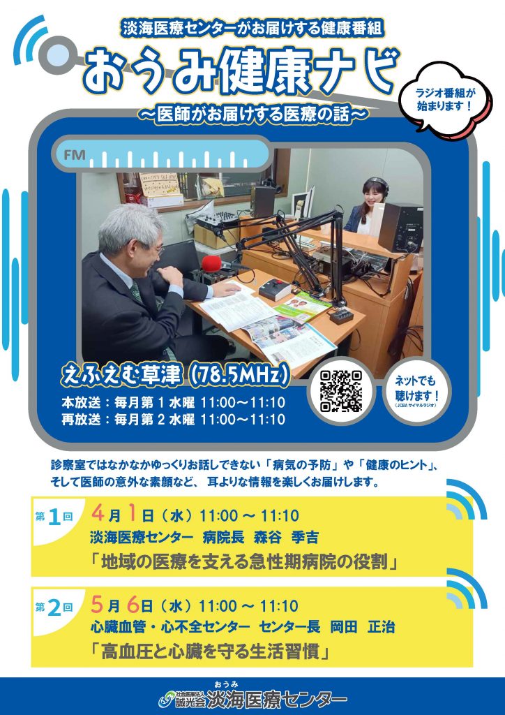 当院では、地域の皆さまに身近で役立つ医療情報をお届けするため、ラジオ番組を放送しています。