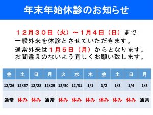 年末年始休診のお知らせ