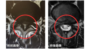 術後(右図)では広がって内部の神経や髄液が確認できます。